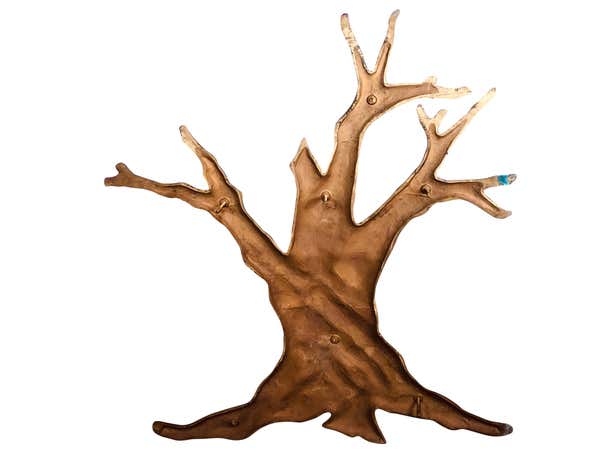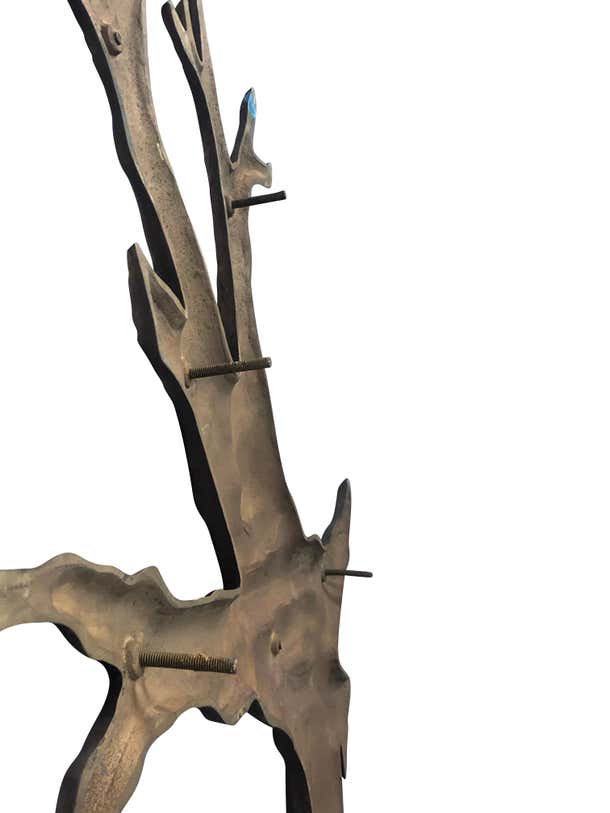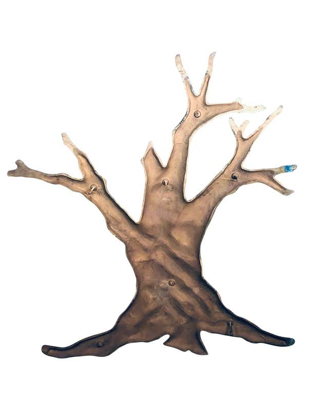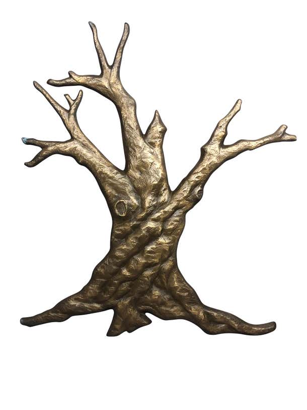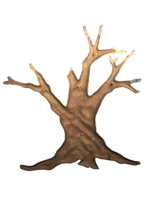 Natural bronze tree midcentury 1950s garden wall sculpture measuring 48 inches high by 39 inches wide by 1.25 inches ...