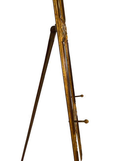 Interesting continental hand-carved painting easel with gilt decoration. Lovely gilded carved- rosette decoration and graceful legs. small dowels adjust t hold different sizes of artwork. Very sturdy. Perfect for displaying artwork or signage for an event or business.