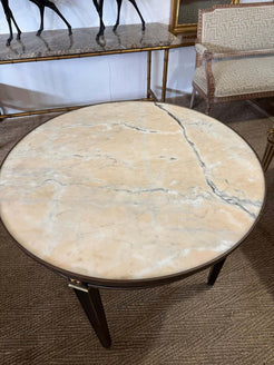 Dimensions: Height: 30 in (76.2 cm)Diameter: 35 in (88.9 cm) Materials and Techniques: Brass,Marble,Wood,Hand-Crafted Period: 20th Century Date of Manufacture: 1920 Condition: GoodWear consistent with age and use.