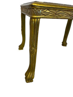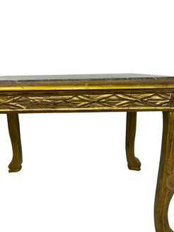 Highly decorative small Louis XV style gilt side table with grey marble top, carved legs ending in paw feet with exte...