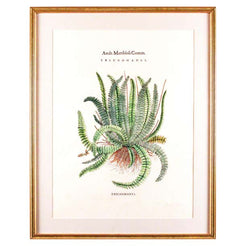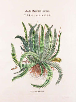 Andr. Matthioli Comm. Trichomanes Fern print Trichomanes is a genus of ferns in the family Hymenophyllaceae, termed bristle ferns. Gold frame with ivory mat. Measures 22 W x 28 H x 1 D.