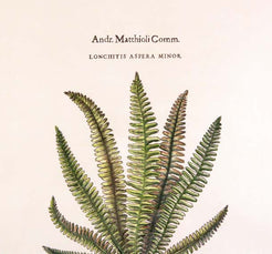 Andr. Matthioli Comm. Lonchitis Lonchitis is a neotropical genus of ferns. It is the sole genus in the family Lonchitidaceae. In gold frame green mat Measures 22 W x 28 H x 1 D.