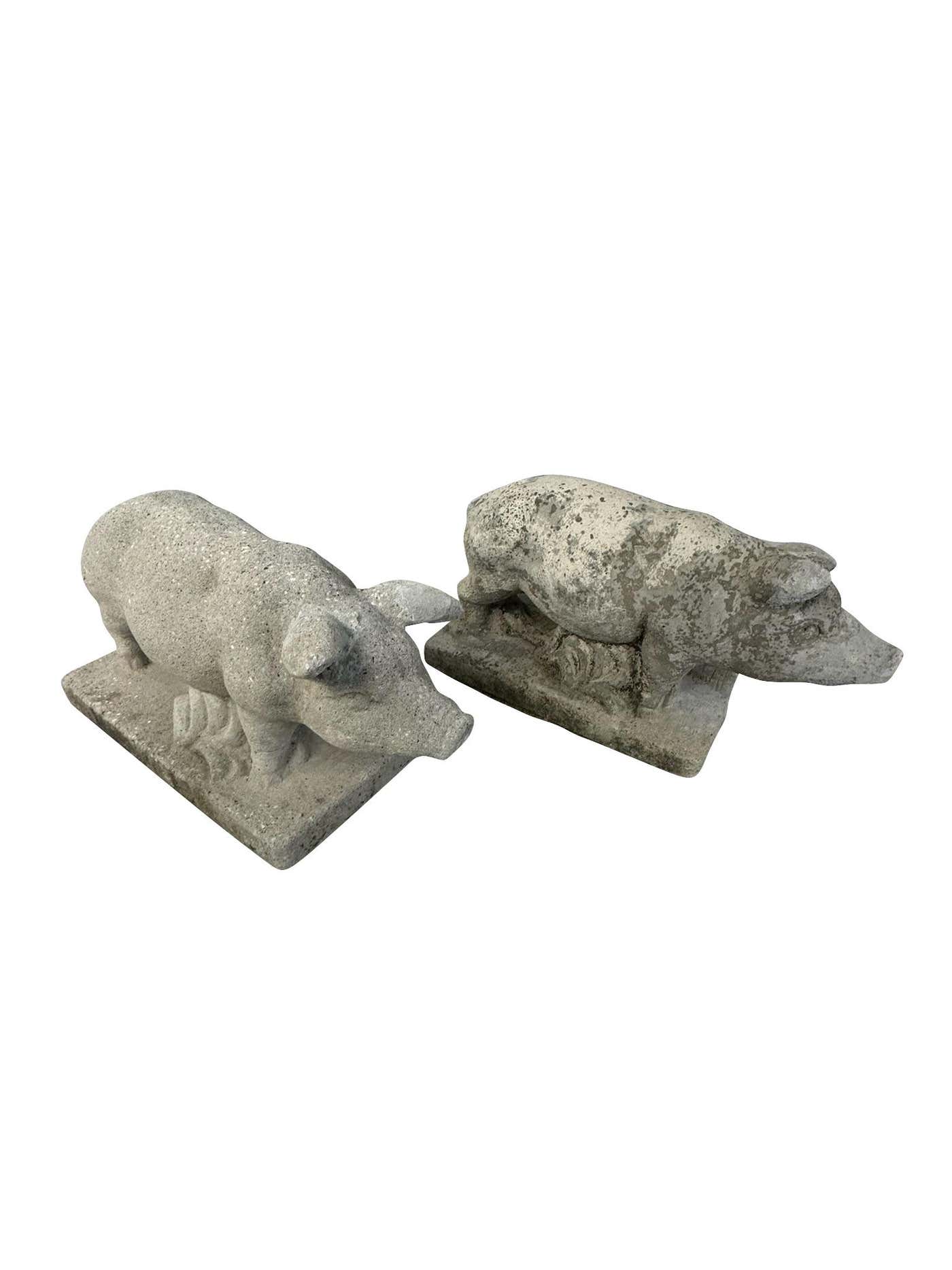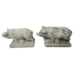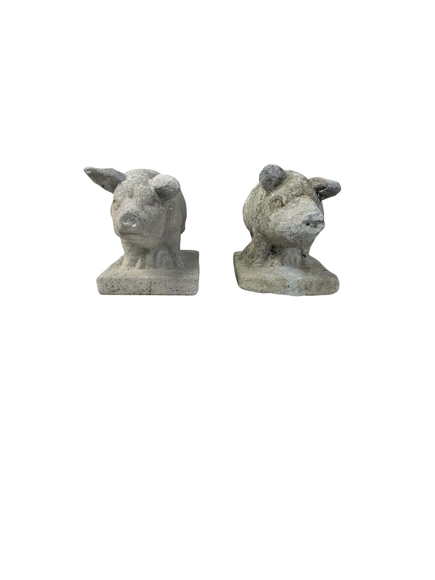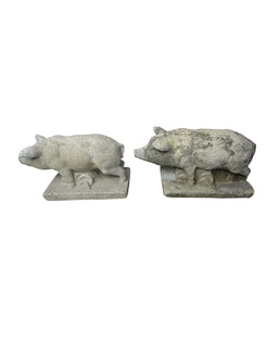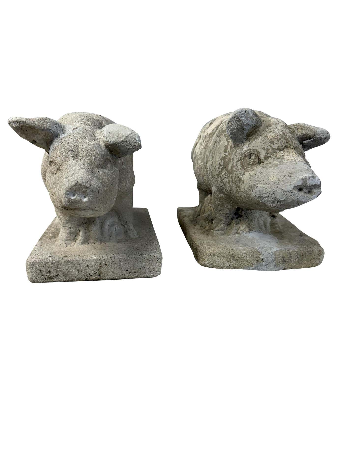 Two adorable stone petite stone pigs to grace your garden, doorstep or farm. Curly tails, quizzical ears, small size so perfect for decorating and not too heavy to move. Age appropriate wear consistent with being outside.