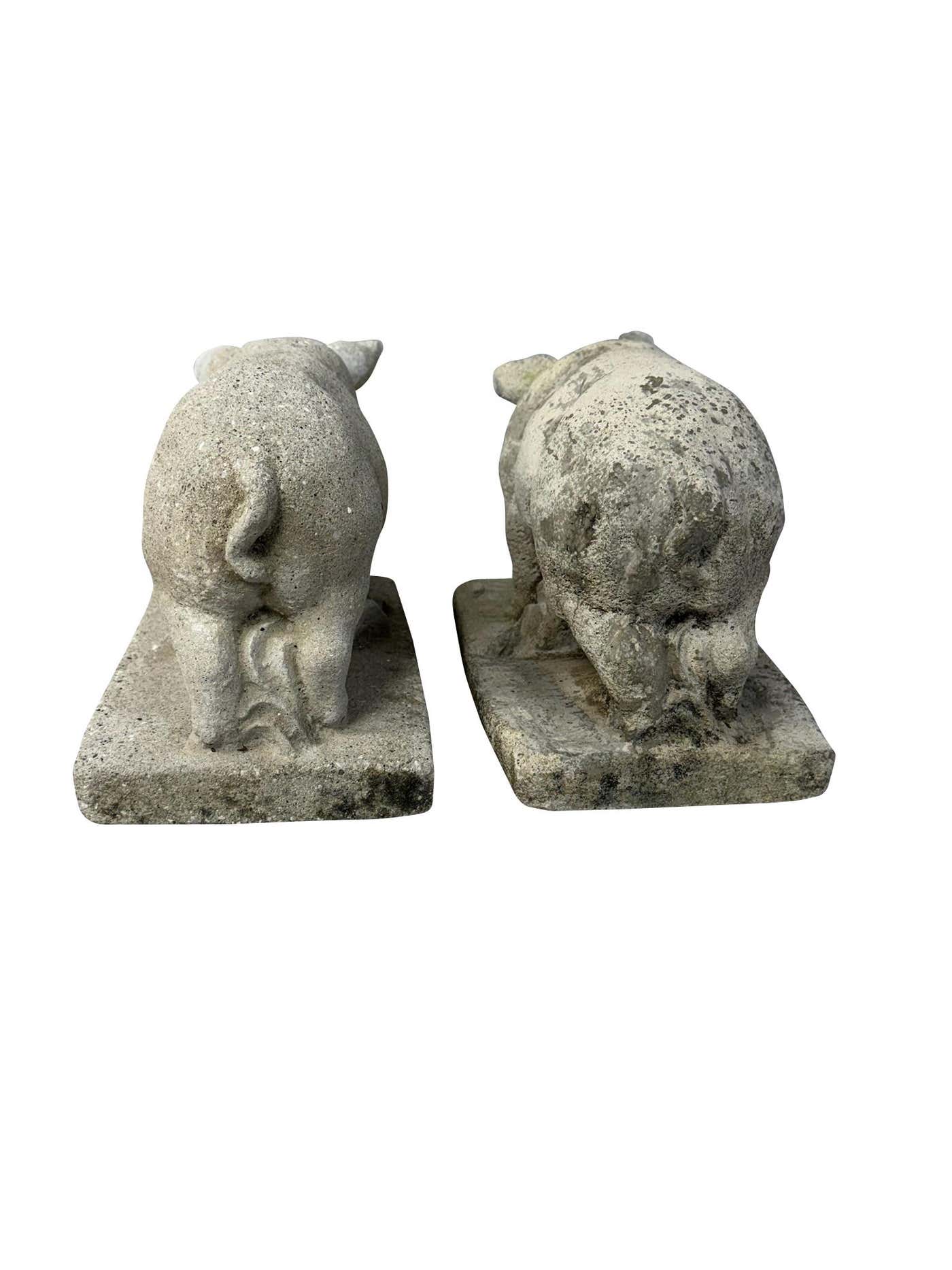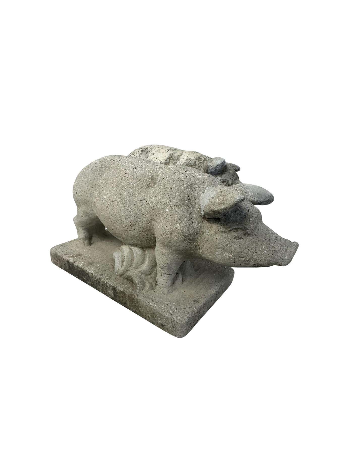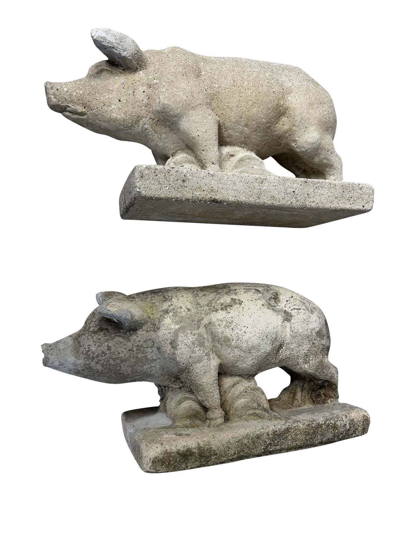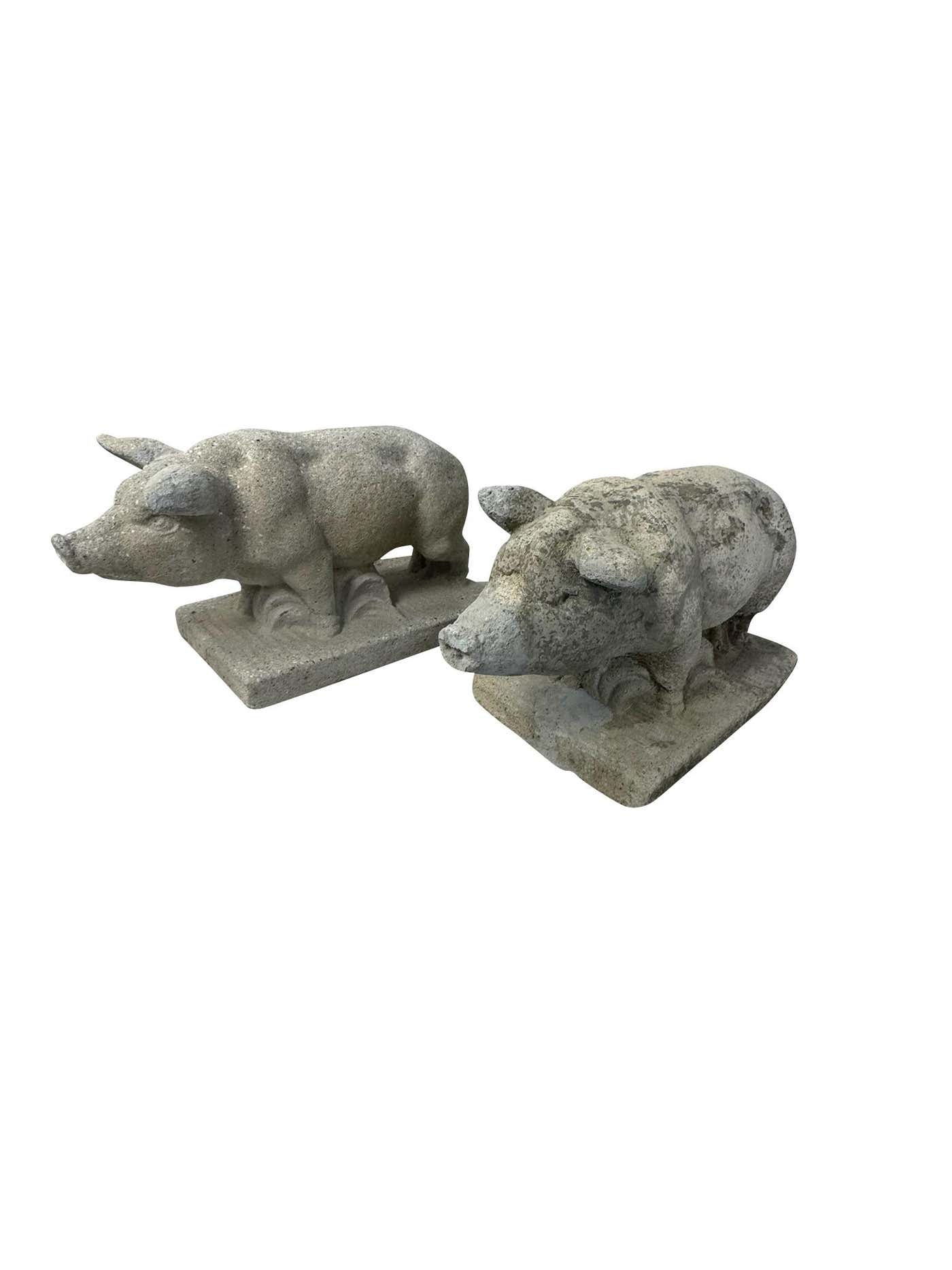 Two adorable stone petite stone pigs to grace your garden, doorstep or farm. Curly tails, quizzical ears, small size so perfect for decorating and not too heavy to move. Age appropriate wear consistent with being outside.